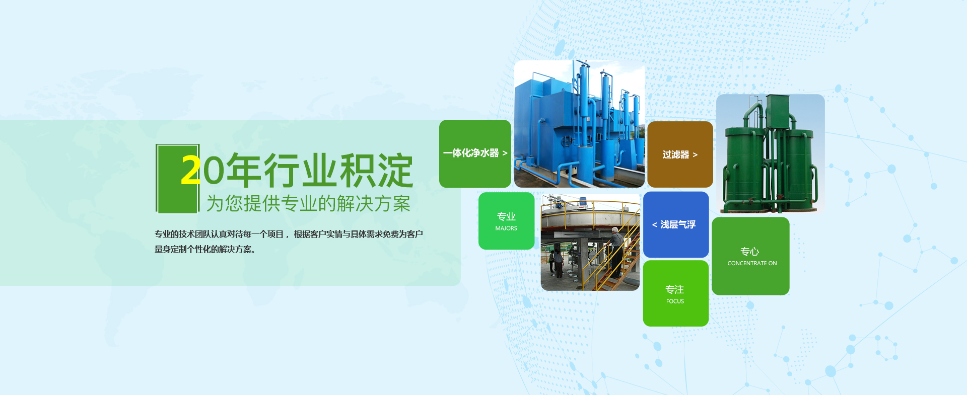 20年專(zhuān)業(yè)技術(shù),超5000家客戶(hù)體驗(yàn)證明,產(chǎn)品遍布全球50多個(gè)國(guó)家,專(zhuān)注20年,只做好一件事,專(zhuān)業(yè)處理各類(lèi)型污水、中水、給水、化水保持100%的達(dá)標(biāo)。